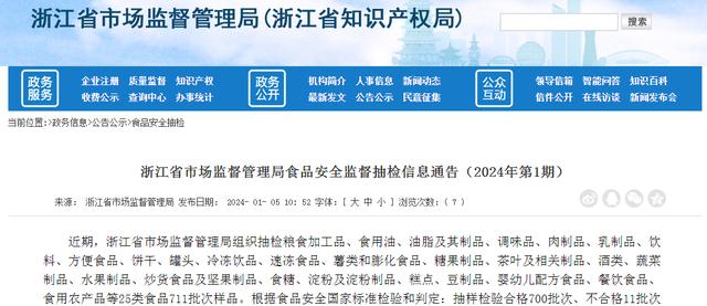 浙江省市場監督管理局食品安全監督抽檢信息通告(2024年第1期)近期,浙江省市場監督管理局...[正文]